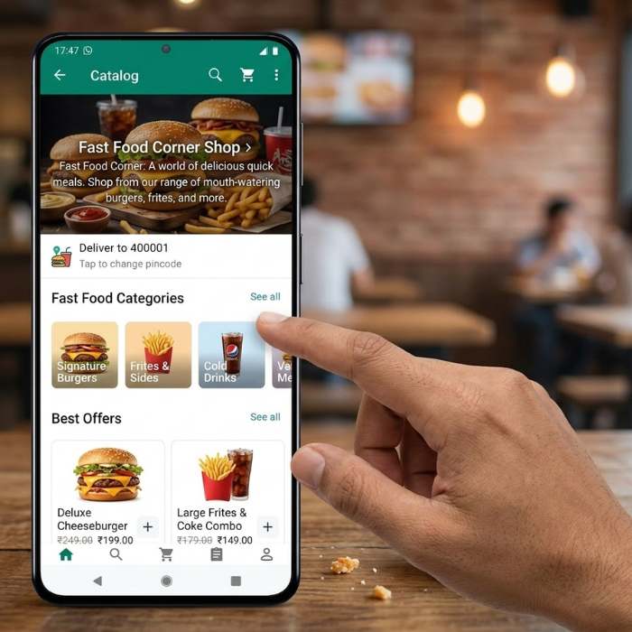 Les clients commandent directement sur WhatsApp grâce à un menu interactif simple, rapide et accessible.